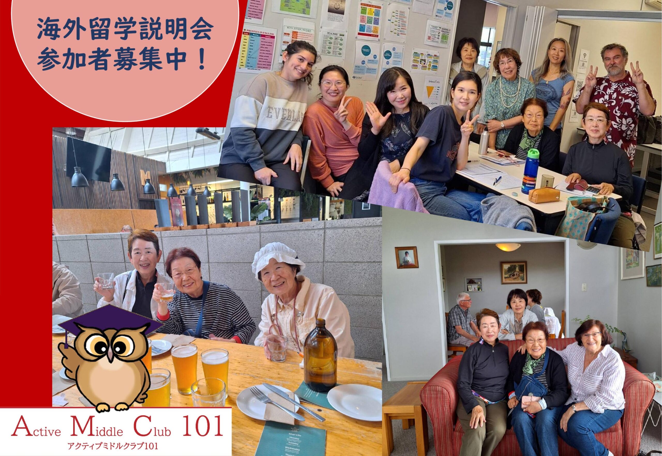 AMC101は大人世代の皆さまにおすすめする「フィリピン・セブ島個人留学&家族留学」、「オーストラリア・ケアンズ語学留学」、「マルタ個人留学」「ニュージーランド・ミドルエイジからのホームステイ&英語研修 in New Zealand」の無料説明会を開催しています。気になる都市のみの話を聞くことも可能です。